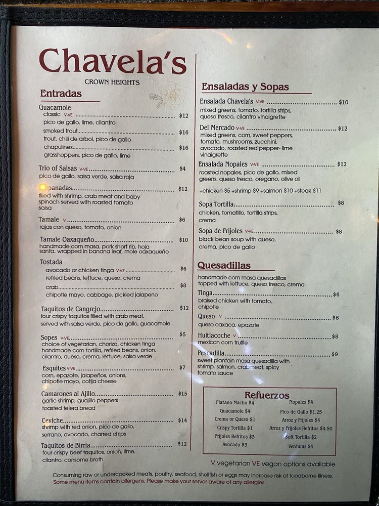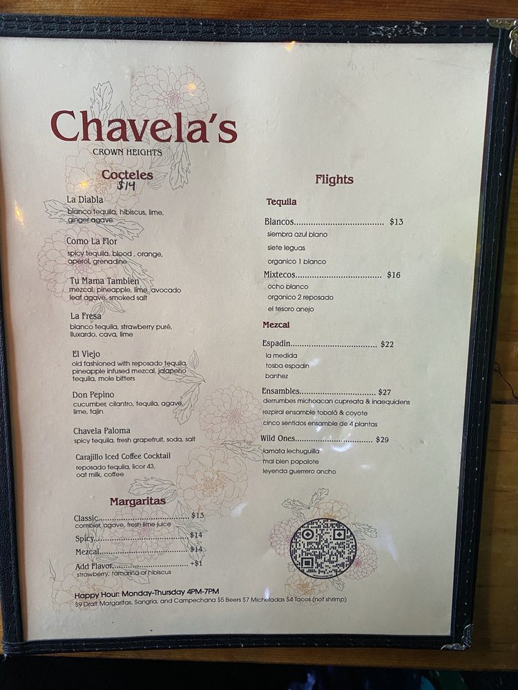Chavela's, a vibrant Mexican bar in Brooklyn, offers a diverse menu with vegan and vegetarian options, perfect for brunch, lunch, or dinner. Known for its cozy ambiance, Latinx-owned Chavela's is a popular spot on Wednesday, Friday, and Saturday nights. Their standout dishes include flavorful guacamole and traditional Mexican favorites like Huevo con bistec. Customers praise the attentive service and welcoming atmosphere, making it ideal for groups and families. Don't miss their To Go cocktails like the Margarita or Sangria, perfect for enjoying at home. With gender-neutral restrooms and a commitment to sustainability with reusable tableware, Chavela's is a must-visit for authentic Mexican cuisine in Crown Heights.
