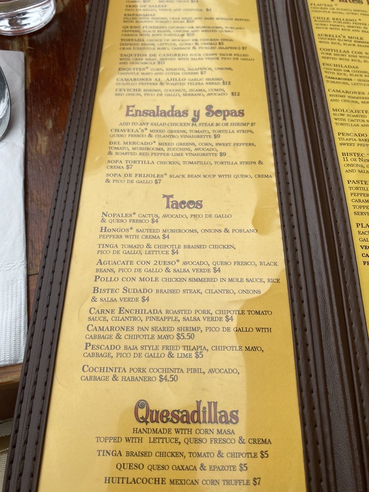 Chicken or cheese; with salsa verde or mole served with rice, beans, queso fresco and crema.