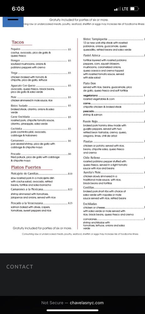 Chicken braised with tomato and chipotle. Handmade with corn masa and topped with lettuce, queso fresco and crema.